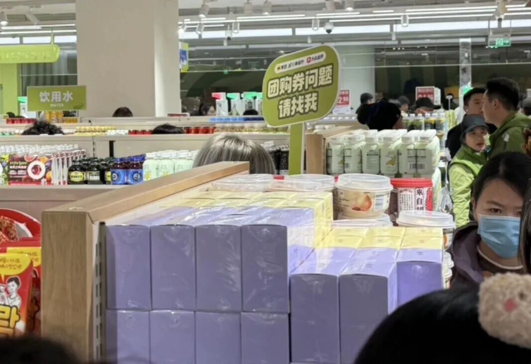 除此之外,店内美团工作人员的身影也是无处不在,他们化身销售为顾客推荐自营产品,并解释“为什么选这个”“和别处有什么不同”,试图在第一时间建立用户对自有品牌的认知与信任。要么在收银区、人流密集货架旁,高频整理货架、补货、引导动线。还有一些做轻量调研或非介入式的观察,现场成为了他们验证线下运营模型的“活实验室”。